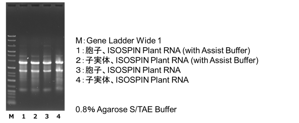 | ①胞子 | ISOSPIN Plant RNA (with Assist Buffer) | 130.8 ng/μL | 2.21 | 2.38 |